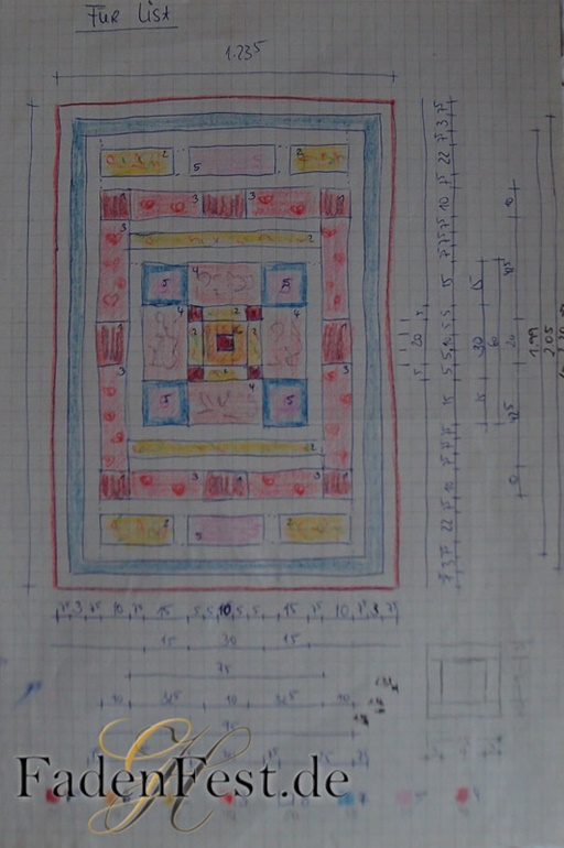 Ein Quilt für die Tochter meiner Freundin. Mal ganz andere Farben. Von der Mama ausgesucht. Von mir umgesetzt. Von Lisa noch immer verehrt.