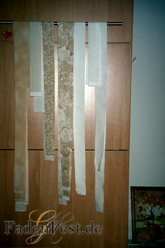 Streifen über Streifen gleichmäßig zuschneiden und bügeln und zusammennähen und bügeln und einen Platz finden, an dem sie nicht wieder knittern... Dafür gibt's praktische Griffe an manchen Schränken.